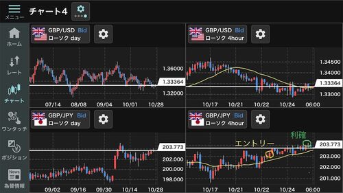 FXトレードしたので書いてみます。 通貨はポンド円。 買いエントリーで今回は利確で終えることが出来ました。
